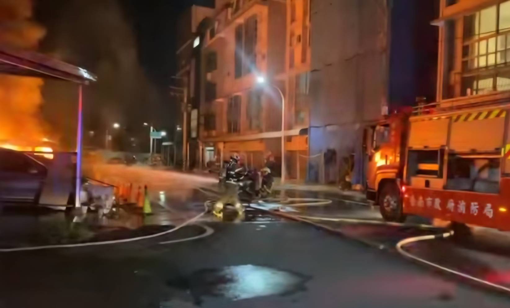 台南市消防局接獲民眾報案後,第一時間,立即火速派遣安和等分隊共24車、54人前往搶救,19時42分首批車組到達,44分佈線出水灌救。.jpg)