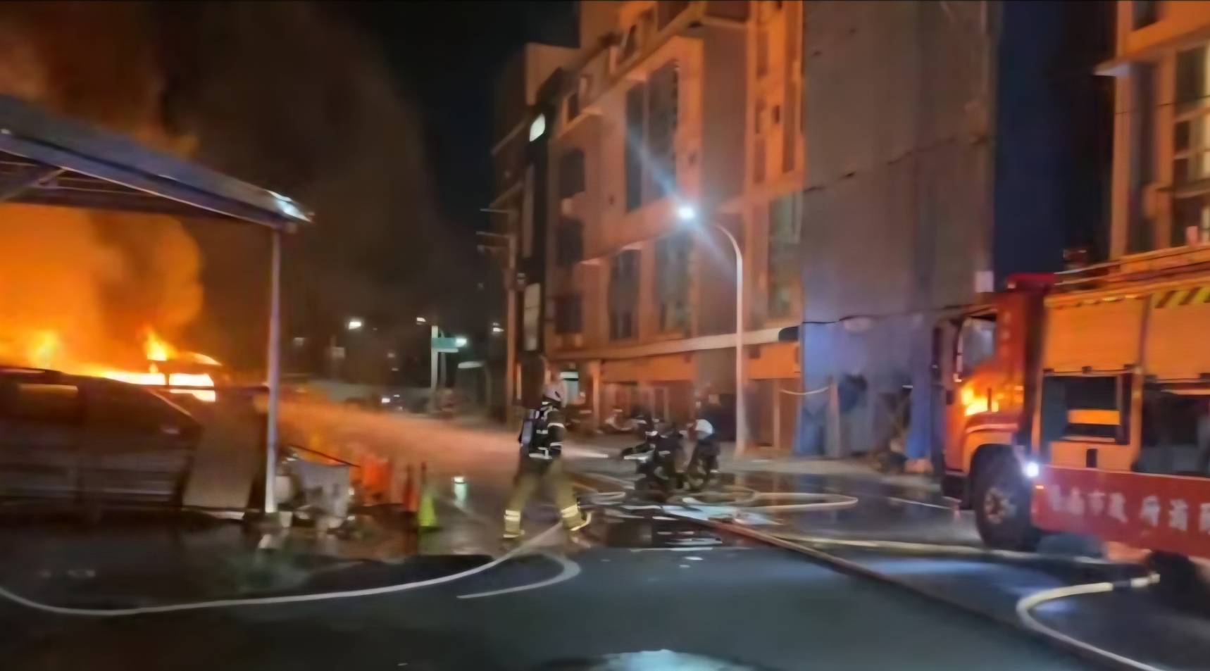 台南市安南區培安路356巷22號一間無招牌流當車存放場,大火現場,160輛汽車、200輛機車,爆炸聲不斷,多輛車大火中,燒成一團團火球。.jpg)