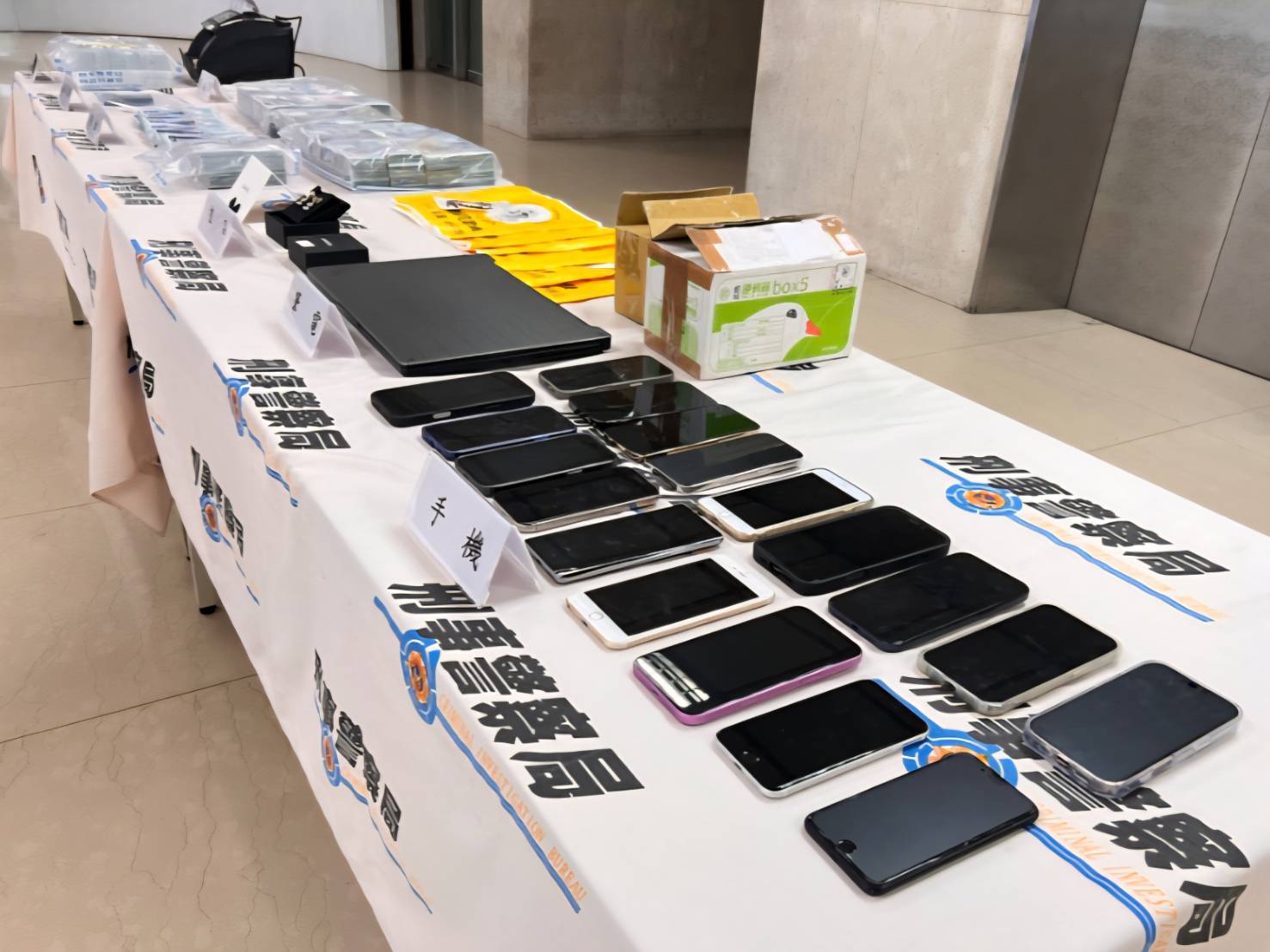 同時,起出查獲贓證物:現金新臺幣(以下同)1,373萬元、虛擬貨幣USDT 20萬顆、千元道具假鈔6百萬元、手機20具、筆記型電腦1台、點鈔機1台等贓證物。