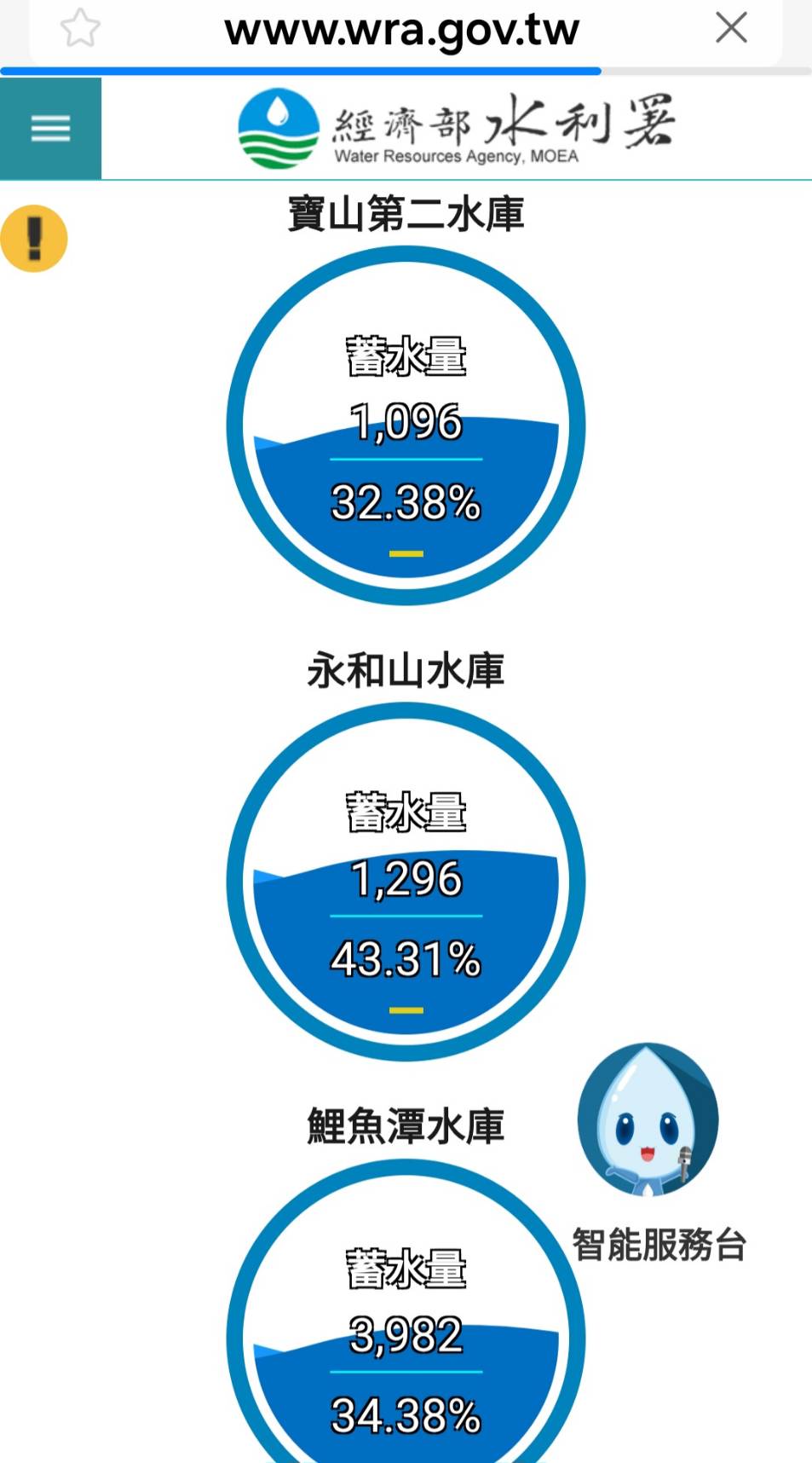 新竹寶山第二水庫蓄水率從23%上升至32.5%。