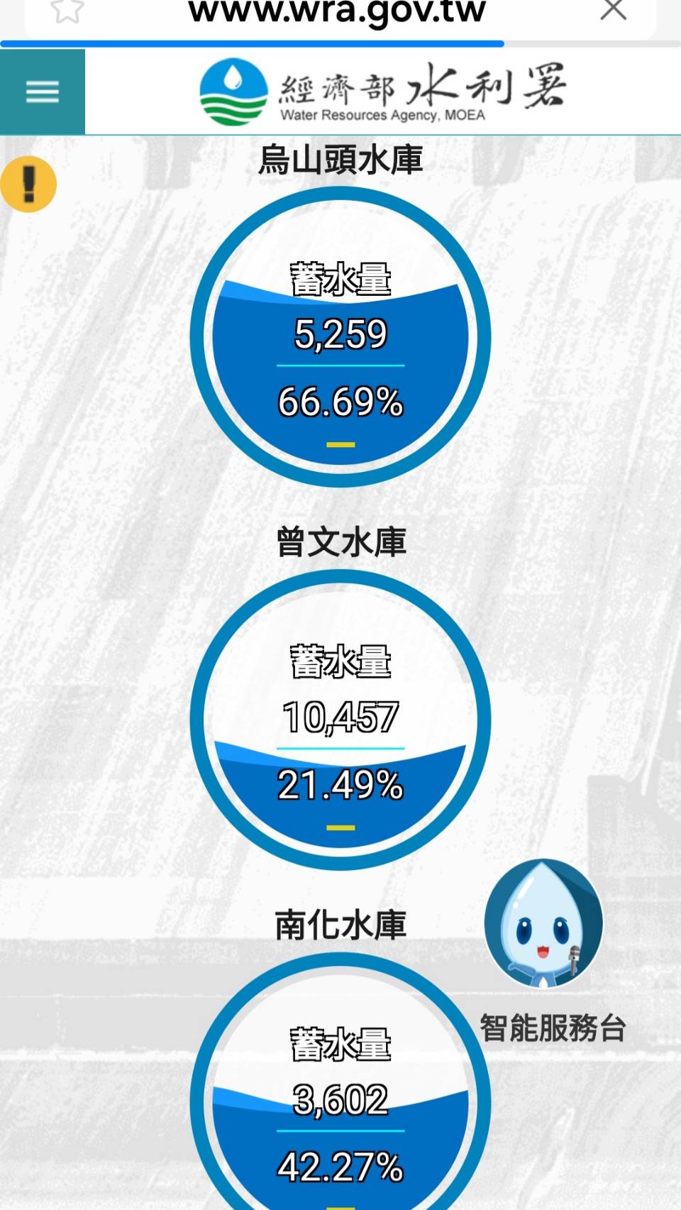 曾文水庫:蓄水率從26.02%降至21.5%。